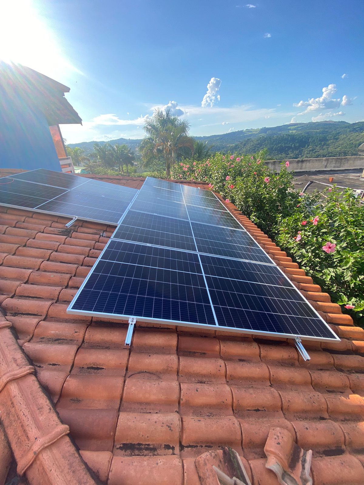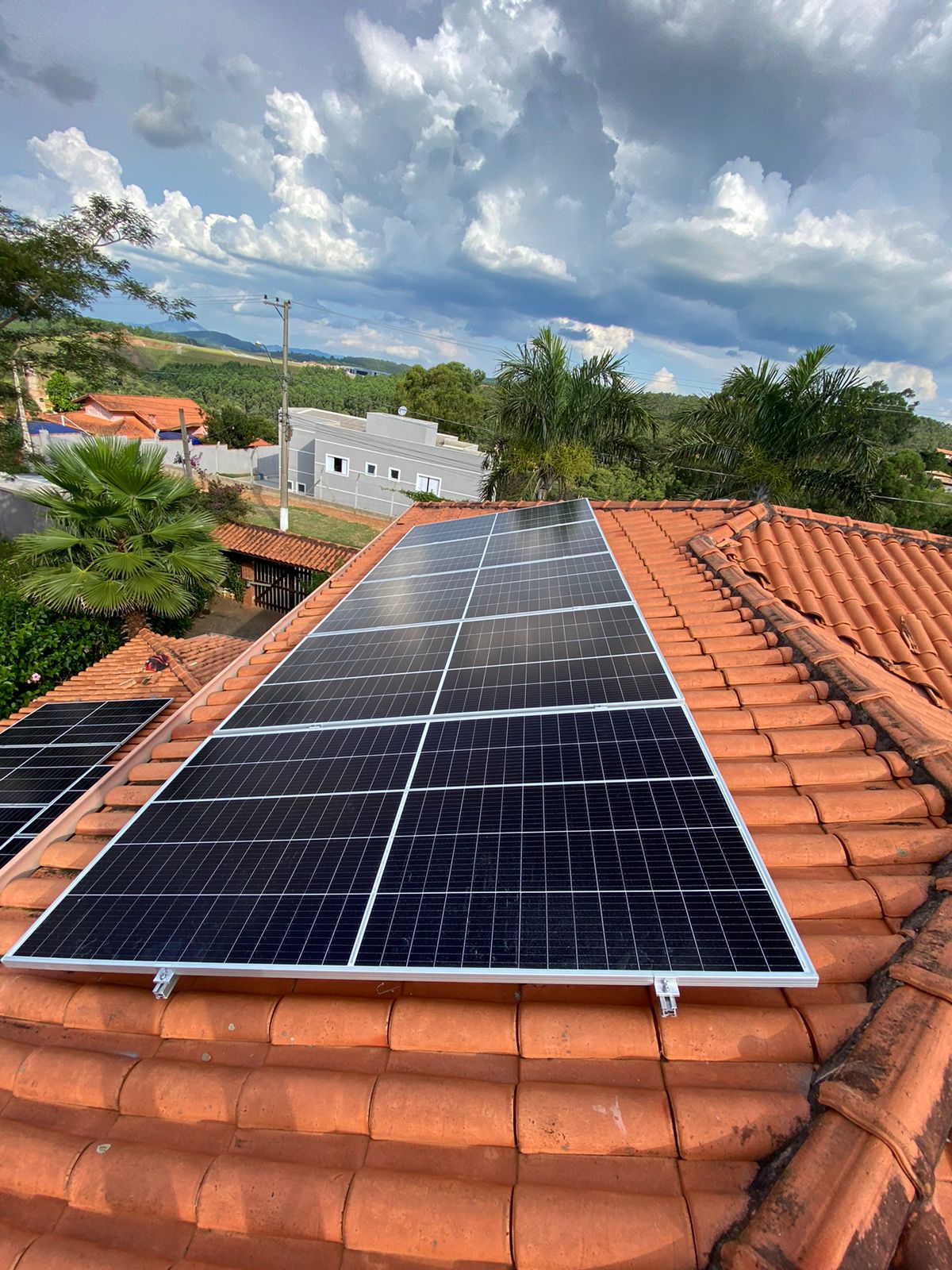Microgerador Fotovoltaico de 6,12 kWp (12 módulos fotovoltaicos Trina Solar de 510 Wp e 1 inversor WEG/Huawei de 5KW de potência nominal). Compõem o kit WEG do gerador solar fotovoltaico a estrutura de suporte para instalação em telhado cerâmico, os cabos elétricos de corrente contínua com proteção UV e demais componentes.