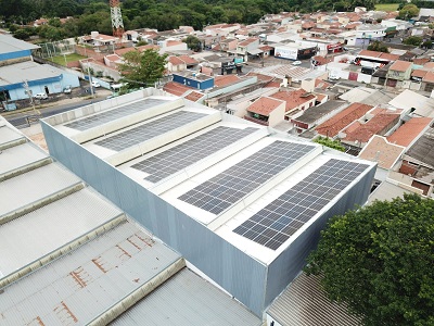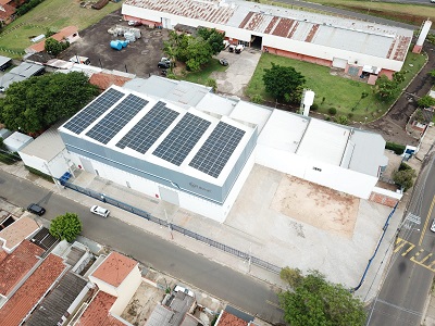 2 sistemas Microgeradores Fotovoltaicos Industriais, um para cada entrada de energia da fábrica: um deles compondo-se de 208 painéis fotovoltaicos WEG/Trina de 510 Wp cada, totalizando uma potência máxima do gerador de 106,08 KWp, ligados a 2 inversores WEG/ Huawei de 36 KW cada, além de outros componentes como estruturas de suporte para telhas metálicas, proteções e cabos elétricos]; o outro Microgerador Fotovoltaico Industrial, compondo-se de 160 módulos fotovoltaicos WEG/Longi de 550 Wp cada, totalizando uma potência máxima do gerador de 88 KWp, ligados a 2 inversores WEG/ Huawei de 30 KW cada, além de outros componentes como estruturas de suporte para telhas metálicas, proteções e cabos elétricos.